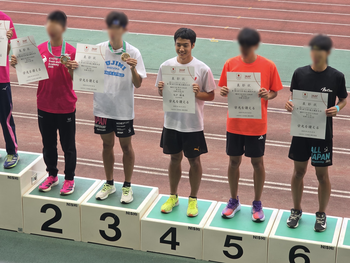 本校の七戸稜来さん(1年5組)が、U16男子110mハードルに出場し、第4位と健闘しました。これまでの自己ベストを0.08秒更新する14秒22の好記録で、見事入賞を果たしました。