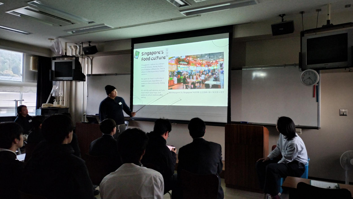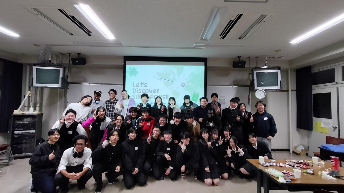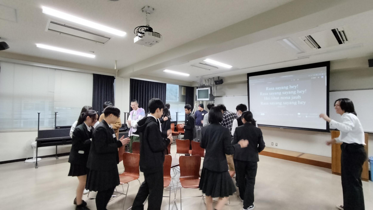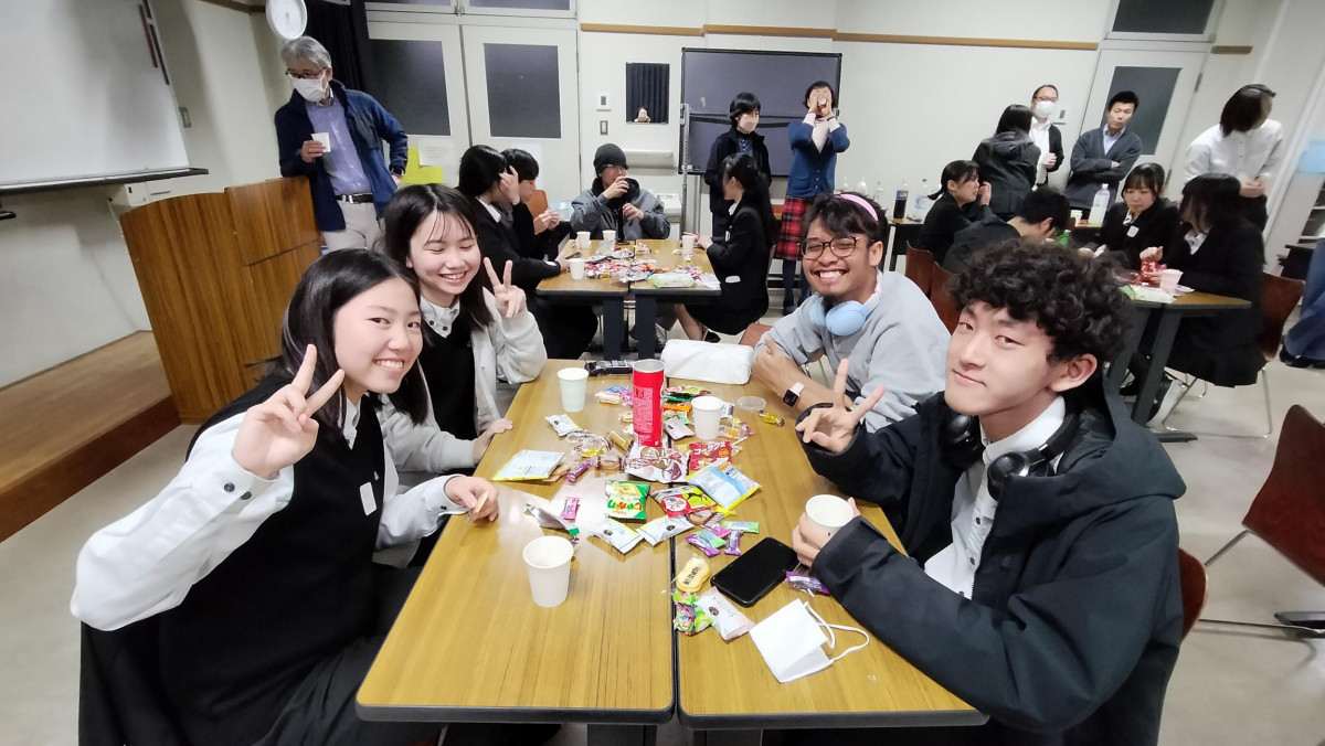 シンガポールからの短期留学生が用意してくれた、パーティーゲームアプリを使ったシンガポール紹介コーナーで盛り上が り 、音楽に合わせた椅子取りゲーム、お菓子を食べながらのコミュニケーションタイム など、学生たちは終始笑顔で英語でのコミュニケーションを楽しみました。